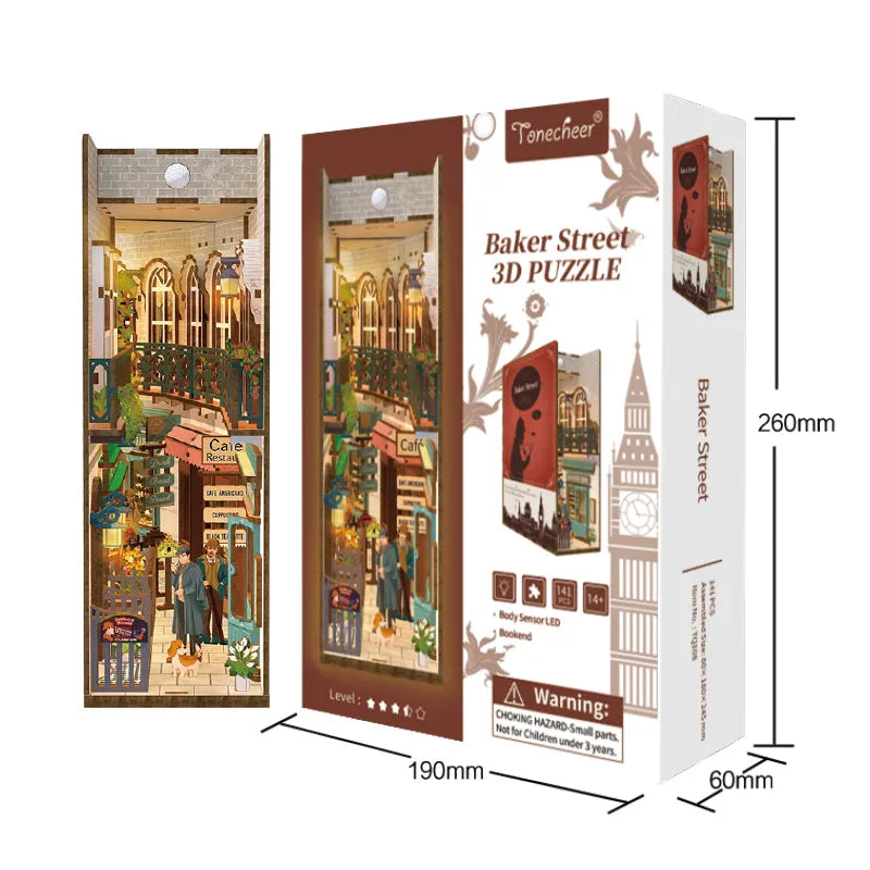 Este Book Nook te transporta a la época del Londres victoriano y te permite sentir el encanto y el misterio de esa era. Balcón de jardín, calles empedradas, faroles — cada detalle está cuidadosamente elaborado para que te sientas en el Londres del siglo XIX.