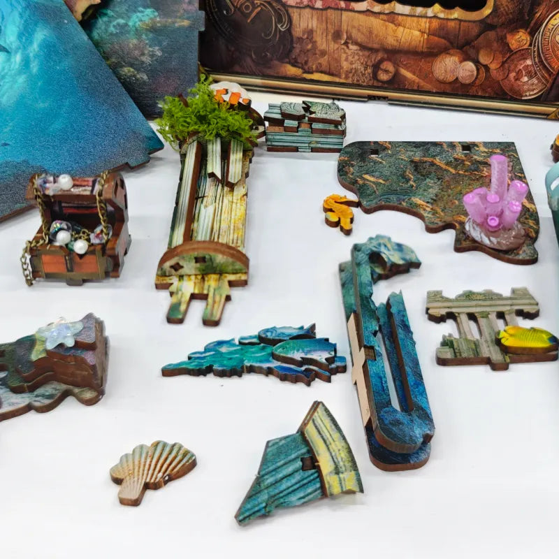 Este rompecabezas 3D DIY está hecho de piezas de madera cortadas con precisión, que usted ensambla con pegamento para crear esta obra maestra. La mecánica especial, como el fondo giratorio que simula el movimiento del mar y la pared trasera calada que ofrece una vista de la profundidad, hacen que el montaje sea una experiencia fascinante.