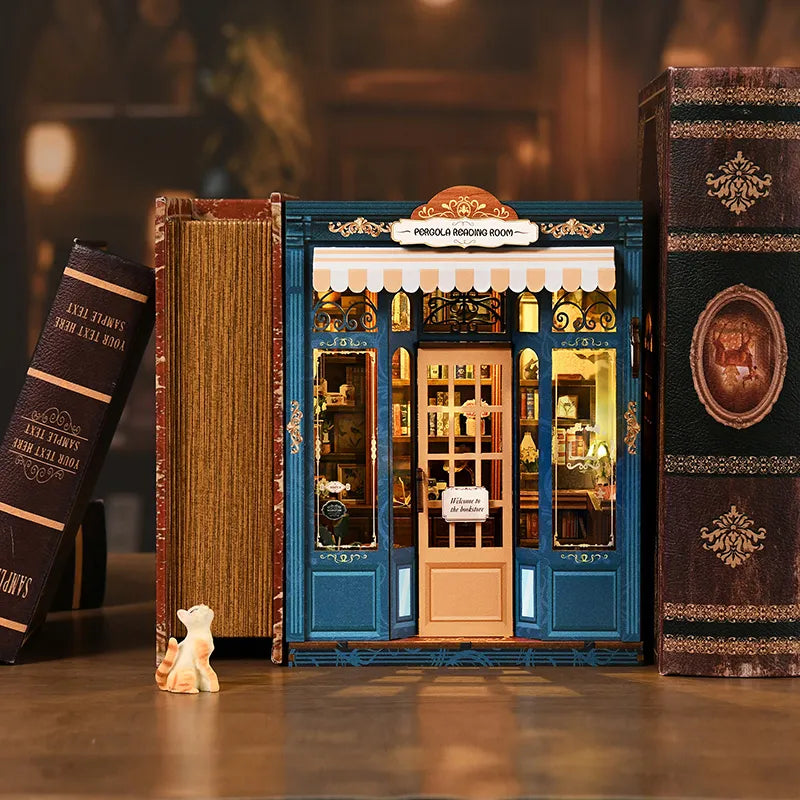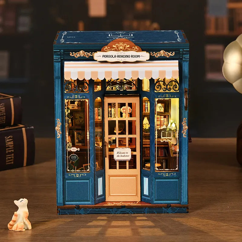 - Puerta de madera interactiva: Ábrala y entre simbólicamente en su rincón de lectura en miniatura privado.